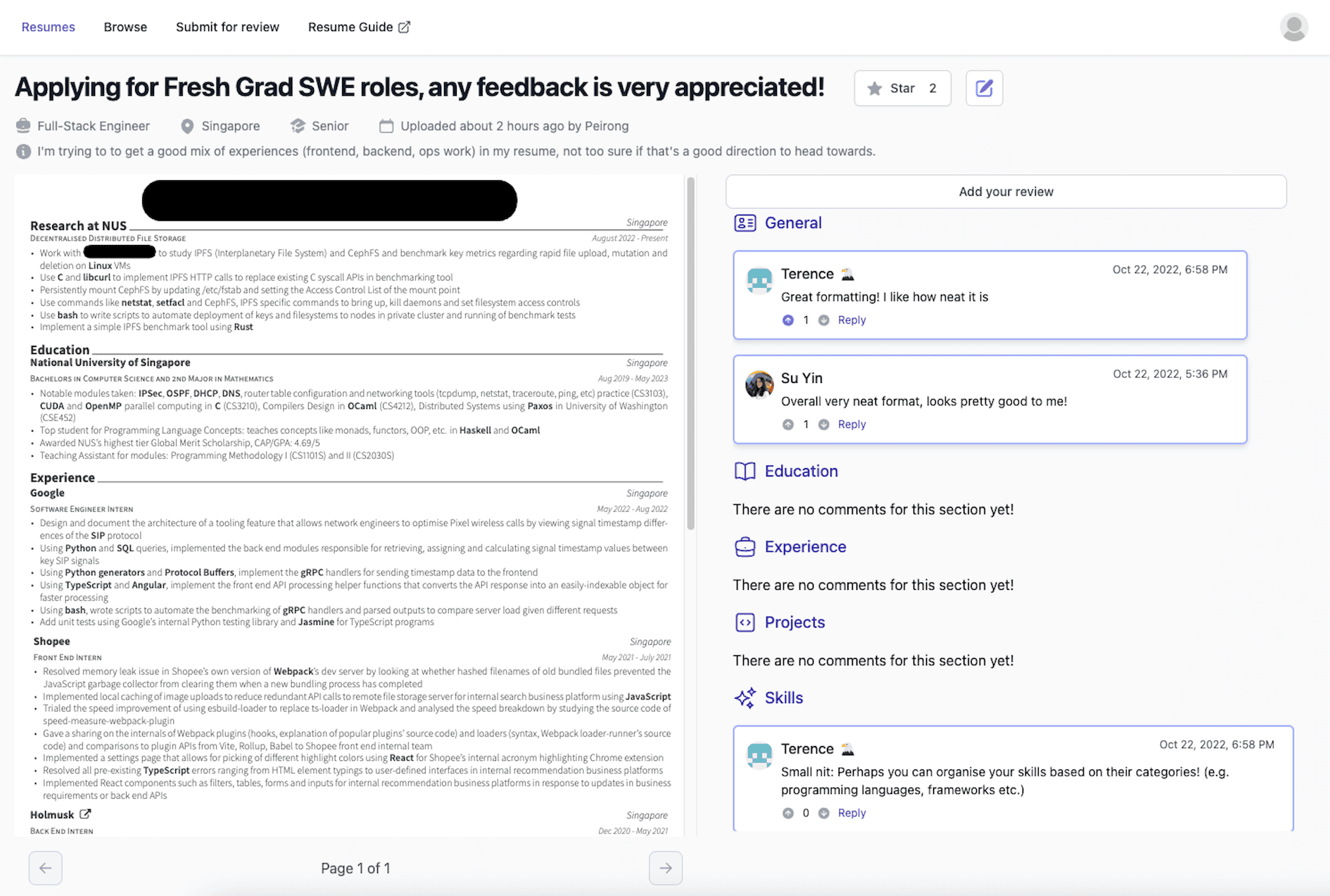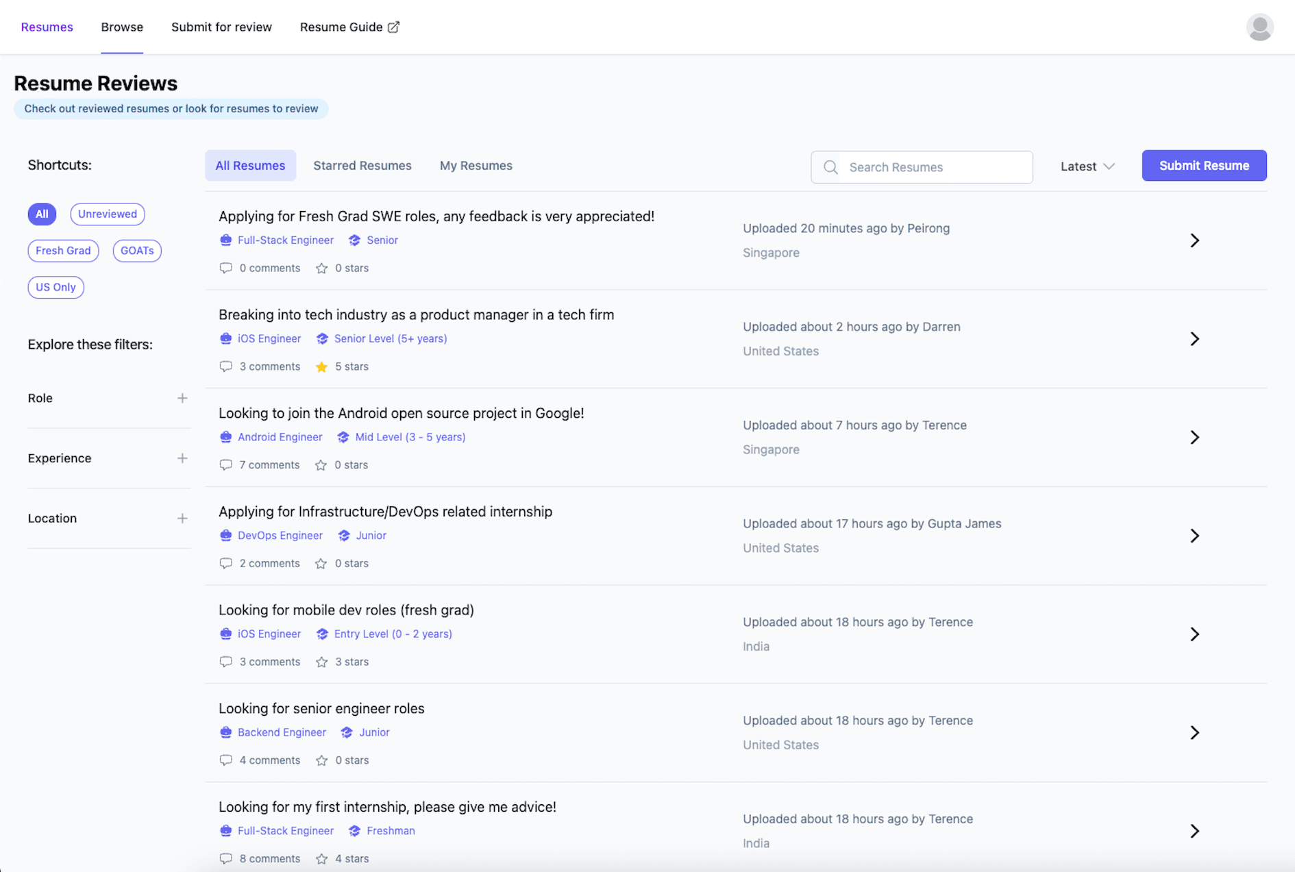 Get valuable feedback from the public or checkout reviewed resumes from your fellow engineers